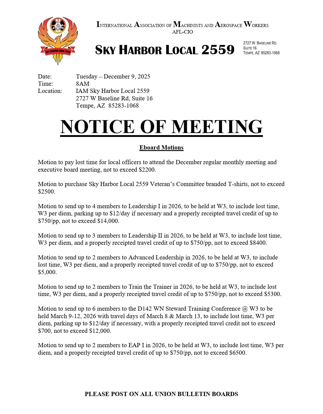 The Executive Board meets every month, typically two weeks before the meeting to decide what to take to the membership and help steer the direction of the local.
