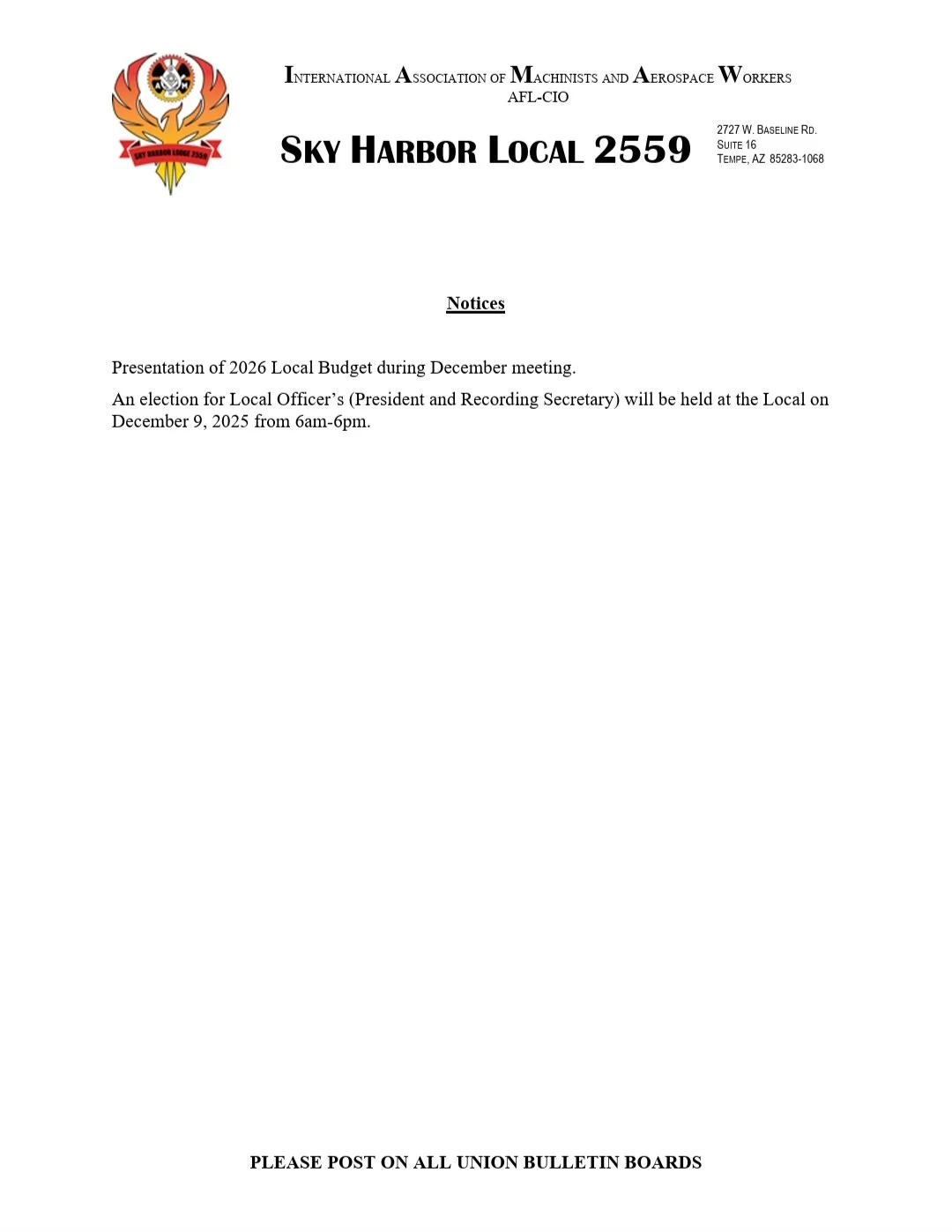 What makes up Sky Harbor local 2559?
